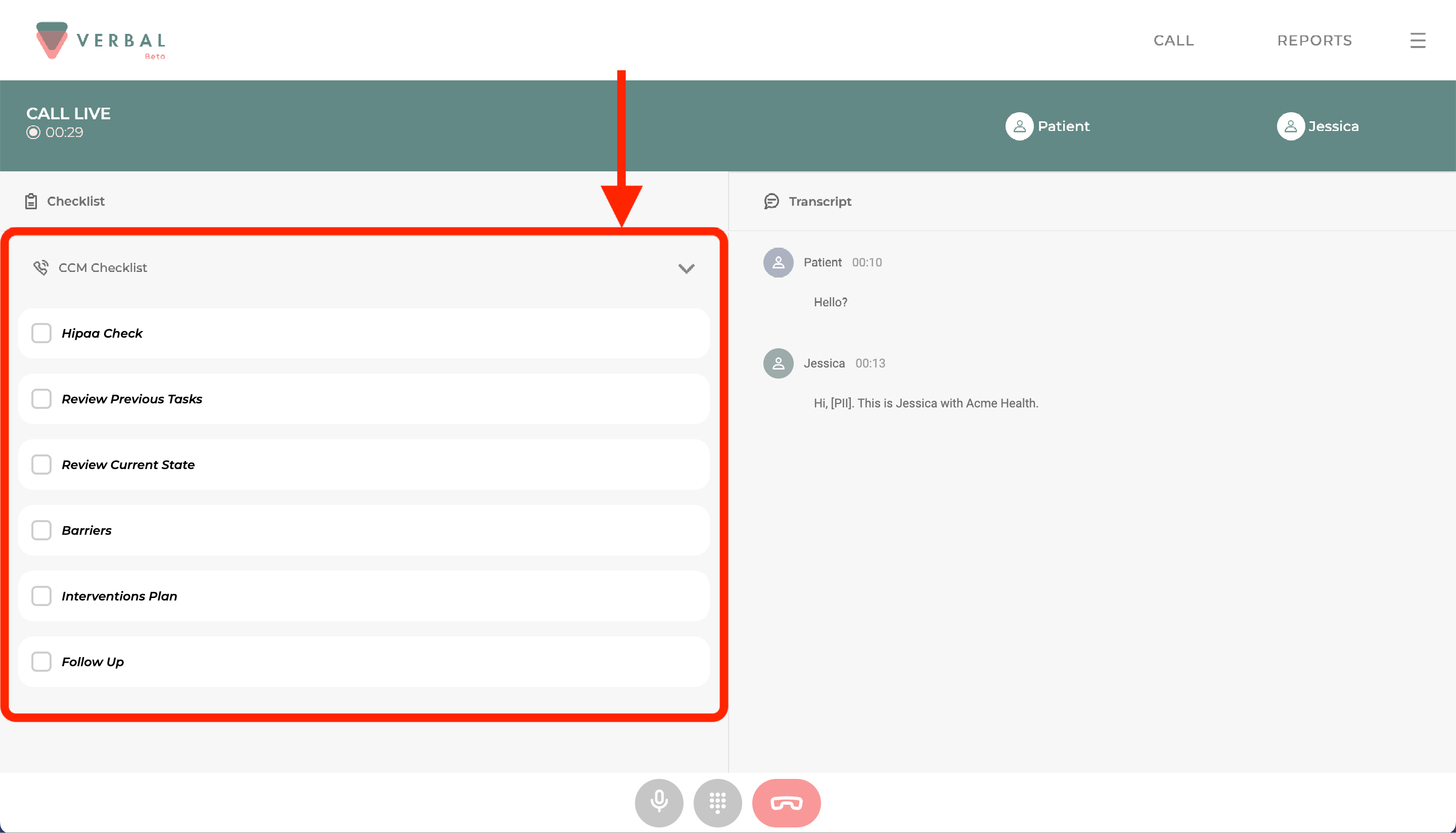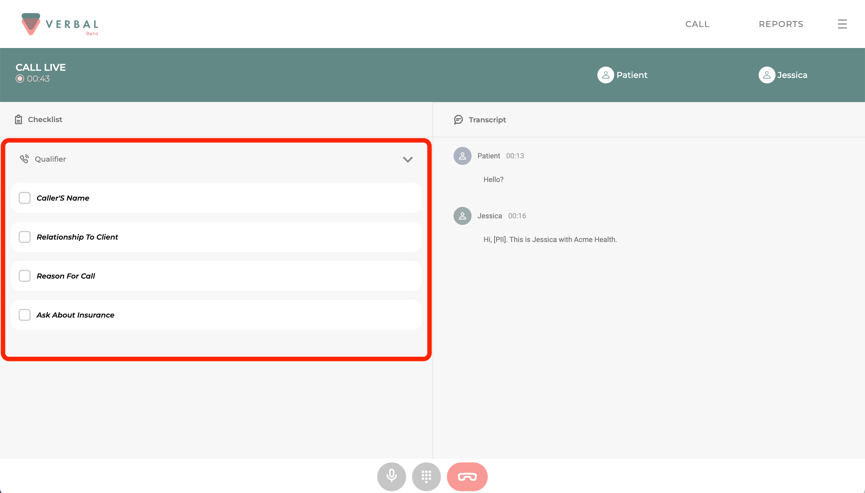 When a provider changes the checklist, the transcript will be reanalyzed from the beginning. Verbal will detect for the new actions throughout the call retroactively and update the adherence accordingly.