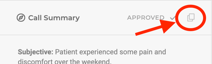 After the summary is approved, a “Copy” button/icon will appear in the summary header.