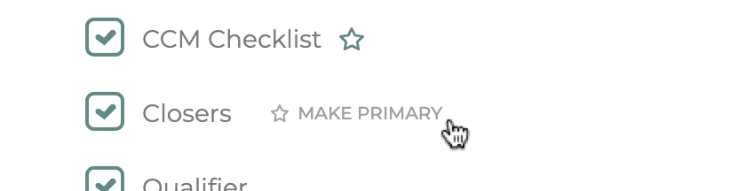Once you select more than one call types - you will see a star icon appear next to one. When you roll over the others, a button will appear saying “Make Primary”. This indicates the primary or default call type. Meaning, if the call type is not known for some reason, calls will default to this type. This should be set as the call type the provider most usually handles.