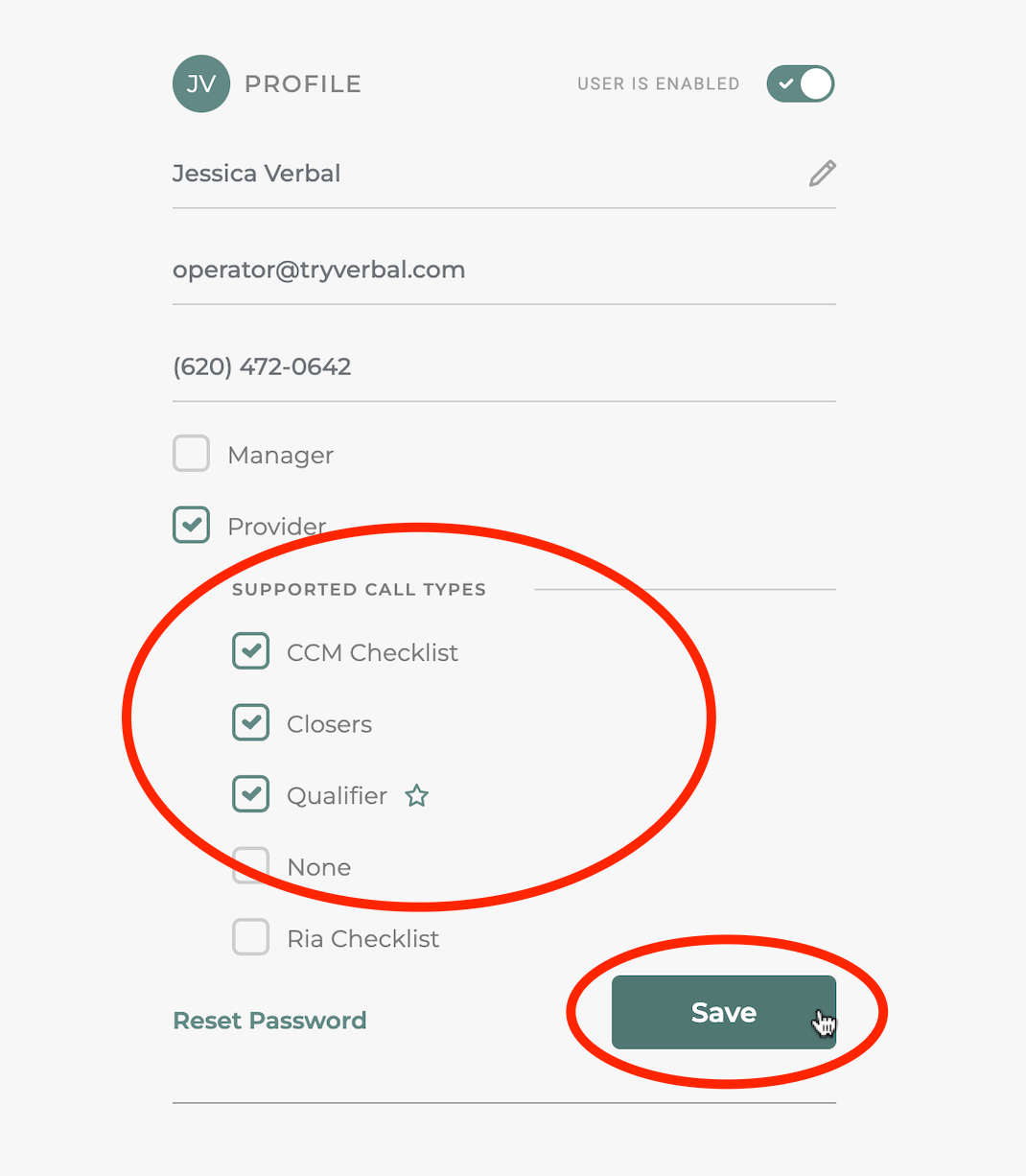 Organizations may have multiple call-types. They can also designate which providers are able to handle which types of calls. This can be controlled on an individual basis and can be done when inviting the provider(s) to Verbal, or it can be changed later.